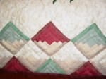 | Artist’s comments | I had started the middle log-cabin section as a couch-cover. But after the delicate efforts I spent on it, I decided to turn this into a larger project and made a matress cover instead. This piece is one in a set of 3 related projects; matress cover (Peace Blossoms in Nature), prayer mat (Peace Blossoms in Prayer), wall hanging (Wings of Silk). The four blocks in the middle represent a season each and the theme of this piece is that nature is colorful and abundant throughout the year.. |