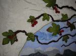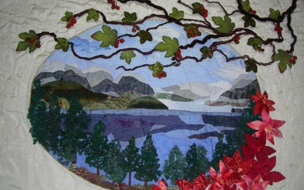 | Artist’s comments | The sombre mood of the sea and forest are balanced with the vivid red flowers. The maple leaves and seeds have also enriched the natural look of this piece. The quilting that imitated the red flowers and maple leaves is also another amusing detail of this wall hanging. |