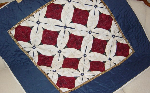 | Artist’s comments | This couch cover is designed double-sided; one side crimson mainly, the other dark blue. I hope to use it with the same pleasure that I had in the creation of it |
