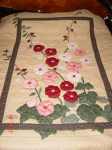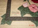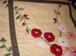 I have always fancied ivy climbing up the walls and the main inspiration of this quilt is this. Big flowers and leaves spreading over the wall (that’s tiled with heavy quilting) imposes the wild life’s passion, the high motivation to survive using the power that nature has given to them…