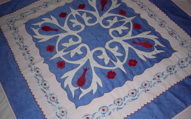 | Artist’s comments | The embroidery was made by my sister 50 years ago; she used it long time as table cloth. But the fabric started to deteriorate and I wanted to protect the embroidery and use in a modern design with all the precious memories it evokes. |