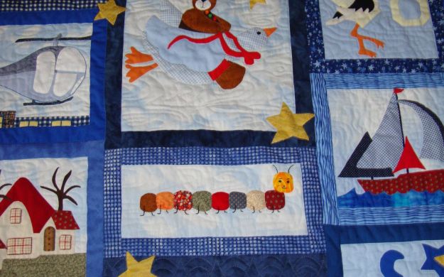 | Artist’s comments | I made this bedspread for my coming grandchild. The design of each part as a fairy tale or imaginary scene and making them into a coherent work was indeed a challenge. I wanted it to be fun, as it would belong a baby, and wanted it to express that I would do all in my power for my first grandchild. Maybe because everyone has some little bundle of joy in one’s life, A Bunch of Fairy Tales has attracted considerable attention of people who have seen my works in exhibitions and other means. |
