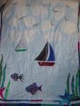 | Artist’s comments | I made this for a baby named Kuzey, meaning “North” in Turkish, thus the title of the bedspread. I believe that I managed to add depth to the rather simple composition of appliques by quilting the same figures in open background. |